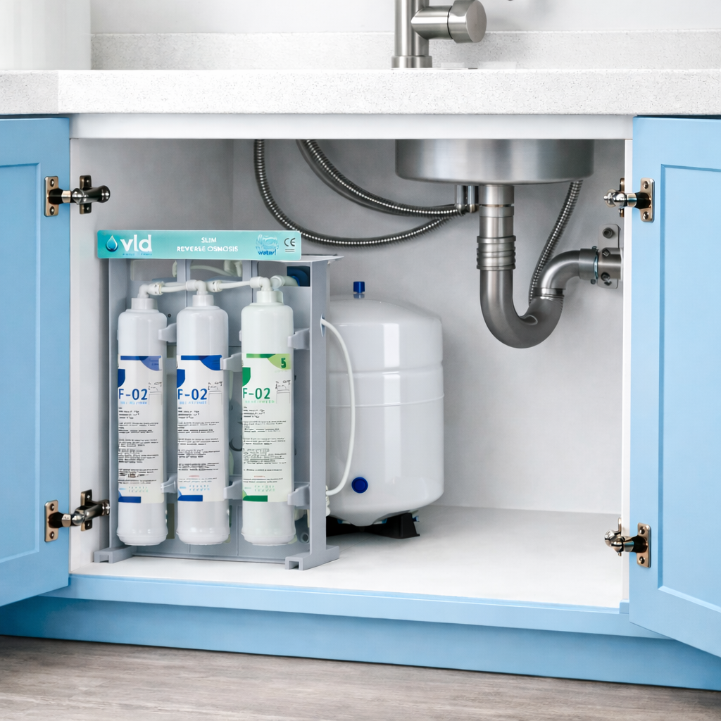 Το Reverse Osmosis SLIM αποτελεί μια ολοκληρωμένη λύση φιλτραρίσματος νερού για οικιακή χρήση, σχεδιασμένη ώστε να τοποθετείται εύκολα κάτω από τον νεροχύτη της κουζίνας σας.